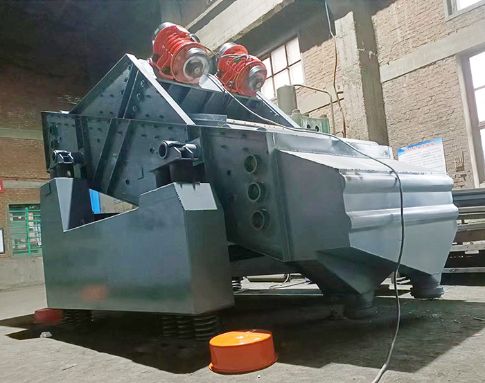 2,充分利用筛网的长度,进料口采用特殊结构,具有横向分散物料作用,相当于将普通振动筛的筛网加长了1m 左右。